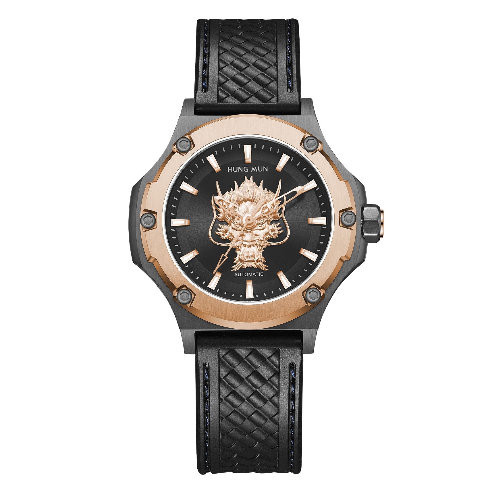 This stunning Hung Mun Dragon Automatic Watch is the perfect accessory for anyone seeking style and function. The FKM rubber band is black in color and has a stainless-steel case material, this watch is durable and water-resistant up to 100m (10 ATM). The 12-hour dial, scratch-resistant sapphire crystal, and buckle closure make it convenient and easy to wear for any occasion. The watch is a mechanical (automatic) type, with an analog display, and was manufactured in 2024. It comes with a 1-year manufacturer warranty and a manual/booklet for your convenience. Available in 2 sizes one for a more masculine wrist and the other for a slender wrist. This watch is perfect for both dress/formal and casual occasions, with a classic and timeless style. Get ready to elevate your look with this stylish and functional timepiece.